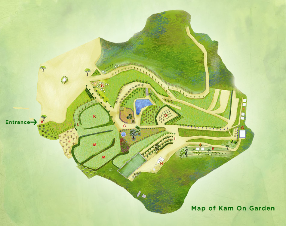 Herb garden has colorful herbs. Do come and touch them, you will smell the joyful aroma.